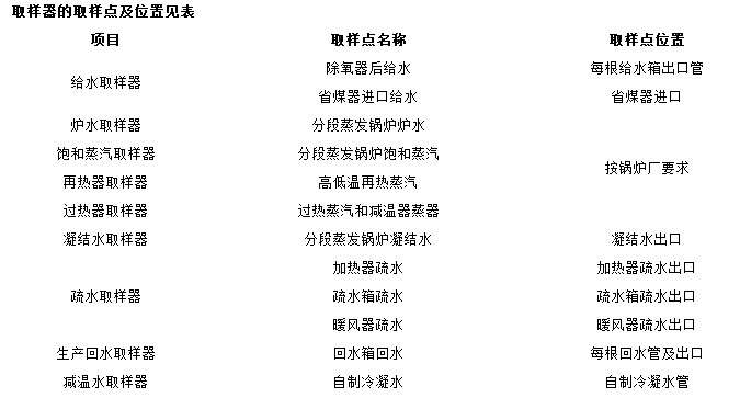 【七】汽水取樣冷卻器的取樣點(diǎn)及位置見表