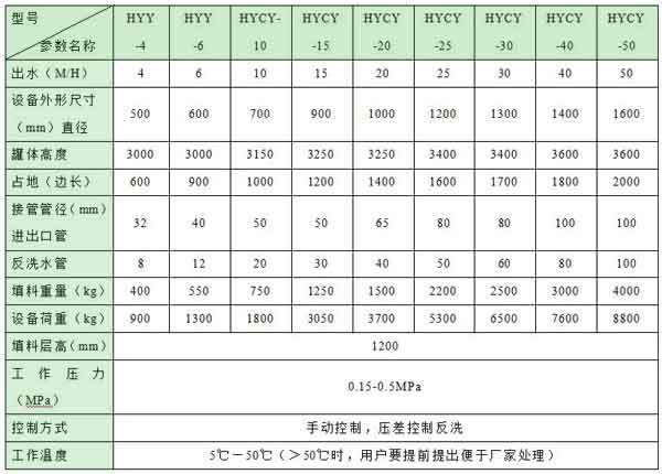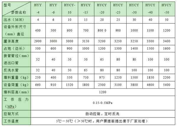 (一)全自動(dòng)控制類型海綿鐵除氧器規(guī)格和技術(shù)參數(shù)表
